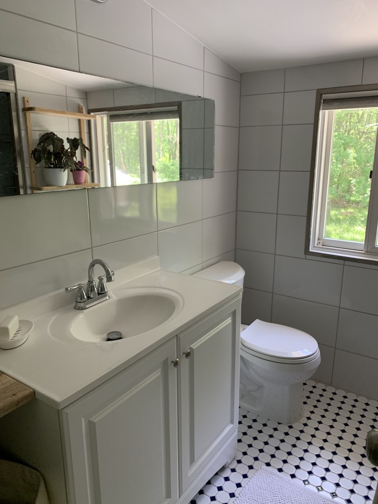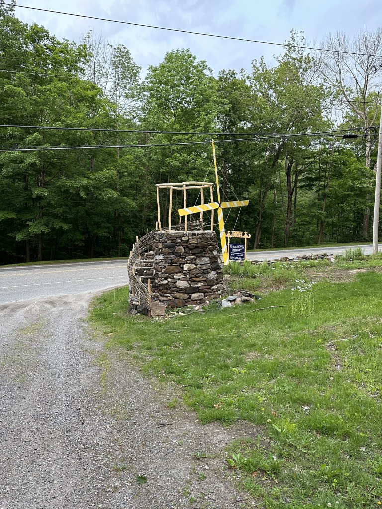 Andi used found rock to create a tower and decorative windmill, as well as to repair the existing, but crumbling, stone wall.