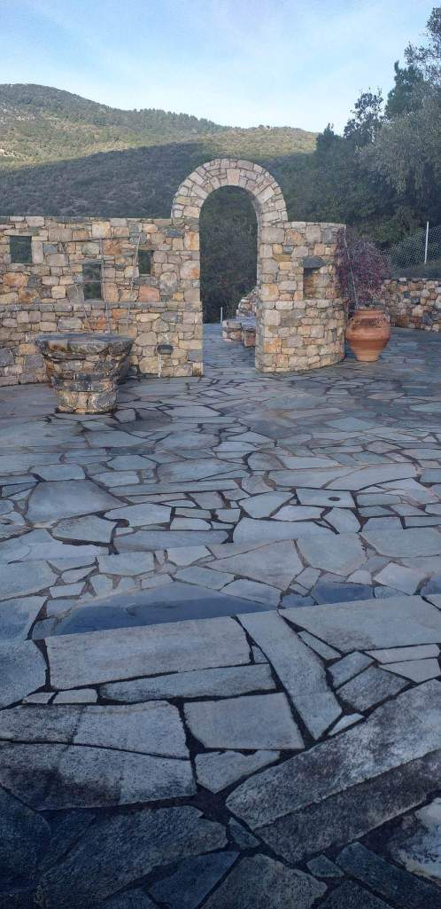 Andi repaired a crumbling stone wall at a home in Northwest Connecticut. Stone Work in Greece